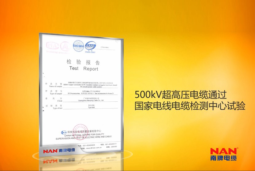 公司是ISO質量處理系統(tǒng)、環(huán)境處理系統(tǒng),作業(yè)健康安全處理系統(tǒng)、計量確保系統(tǒng)認證企業(yè),具有廣東省電纜作業(yè)僅有的工程技術研討開發(fā)中心,南洋電纜具有多項專利并多次參與國家規(guī)范及作業(yè)規(guī)范的擬定,不斷立異開發(fā)新產品。35kV及以下電纜產品獲得全國工業(yè)產品出產許可證,電線產品經過我國質量認證中心CCC認證,110kV電纜經過我國電力企業(yè)聯(lián)合會產品斷定,220kV電纜系統(tǒng)經過預斷定試驗;500kV電纜系統(tǒng)經過型式試驗和荷蘭凱馬(KEMA)認證,加添華南地區(qū)500kV電纜產品的空白,可代替進口產品,電纜制造技術抵達國際搶先水平。